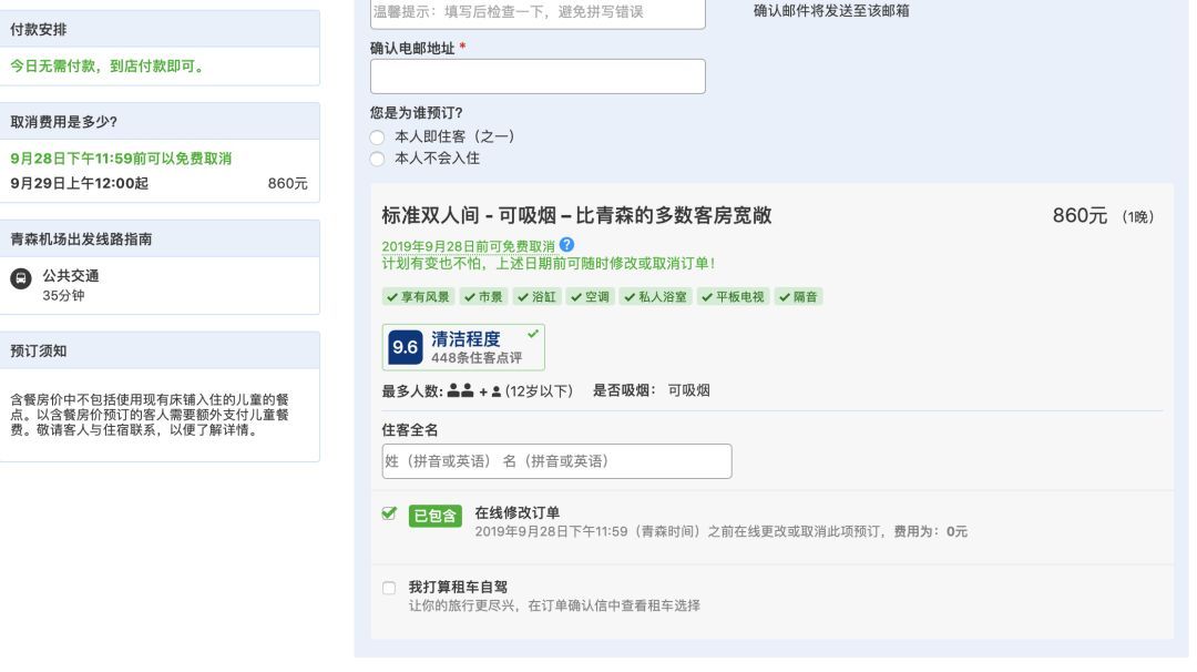 选好房间我们直接点预订就好了,这里需要填写基本信息。