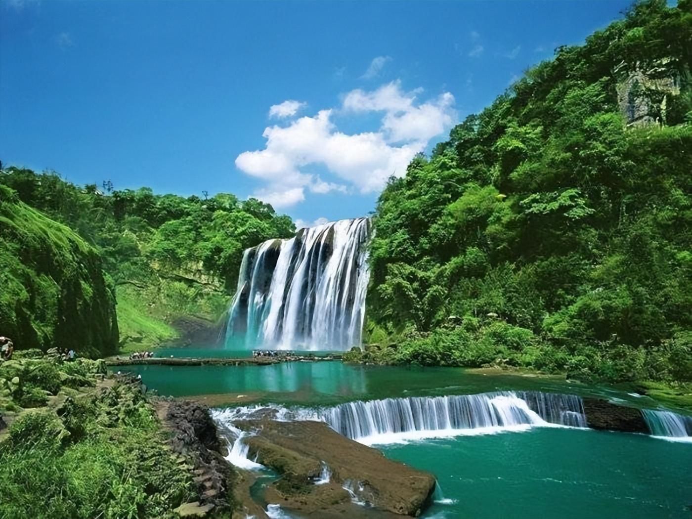 黄果树瀑布;教科书上的大瀑布群,而只有真正走到瀑布边上,才知道瀑布的壮观!连绵不断的水声冲击着感官,小水珠呼呼的飞溅。