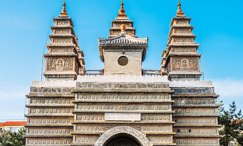 五塔寺(金刚座舍利宝塔)位于呼和浩特市玉泉区五塔寺后院。始建于清雍正五年。金刚座舍利宝塔是一个在金刚宝座上建有5个玲珑舍利小塔的建筑,人们通称为五塔。塔身高16.5米,为金刚宝座式,由塔基、金刚座、塔顶三部分组成。