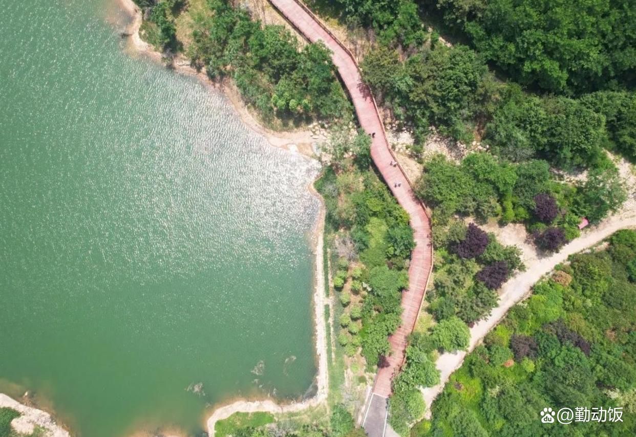 从上空俯瞰,叠翠湖如翡翠一般澄澈。从岸边可以看到远处的浮山主峰倒映在湖面上,叠翠湖旁便是茶园,沿着绿道走进其间,茶香弥漫,令人神清气爽。