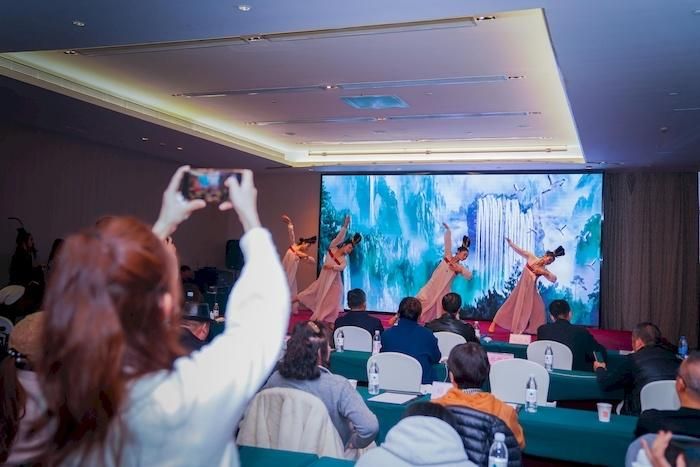 在穿越的剧情里领略淮南浓厚的文化底蕴和丰富的旅游资源,原创舞台情景剧《楚风汉韵邂逅大美淮南》在会上上演,成为本次推介会的一大亮点。现场通过巧妙构思,由淮南王刘安以穿越时空的方式对话旅游博主,在古与今的传奇碰撞里,带领观众一起深度畅游淮南百花齐放的文旅项目,邂逅梦中的淮南,沉浸式演出引得现场嘉宾强烈共鸣与喝彩。
