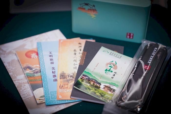 推介会上的淮南文旅文创产品及手册。董艳芬摄