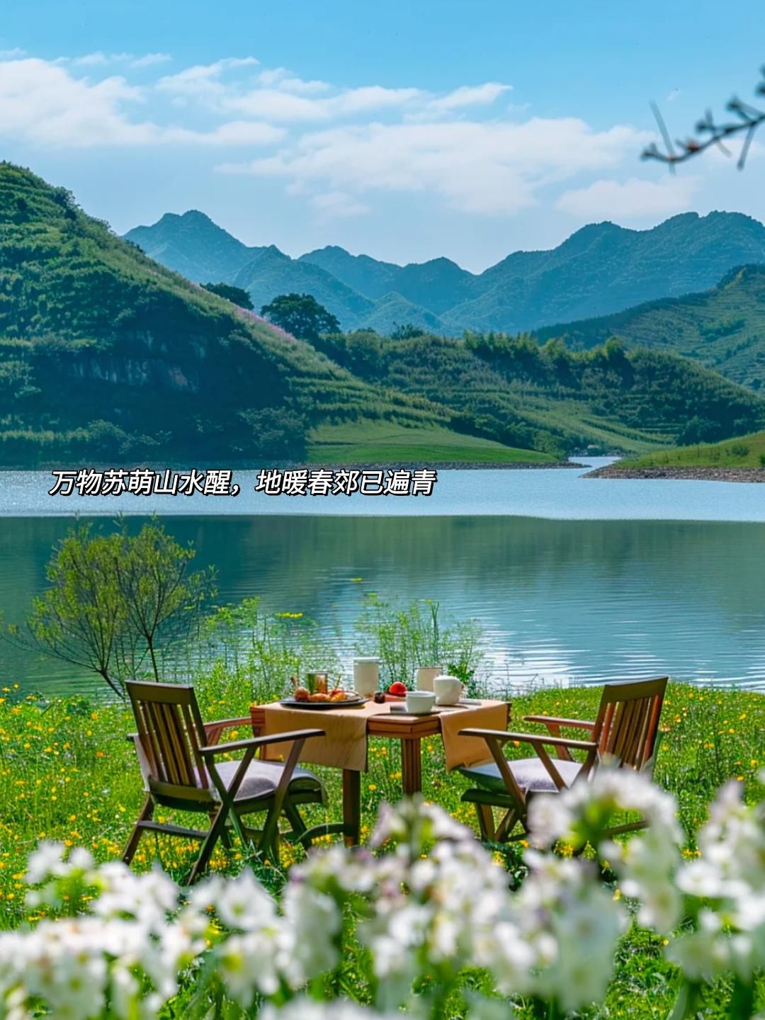 28、万物苏萌山水醒,地暖春郊已遍青。
