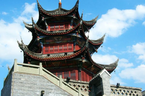 七阁八庙。七阁(文昌阁、魁星阁、九天阁、水云湘阁、桂香阁、玉皇阁、观音阁)。八庙(城皇庙、龙王庙、五谷庙、财神庙、张飞庙、水官庙、东岳庙、山神庙)。三殿(大雄宝殿、关神殿、中岳殿)。四寺(太平寺、清真寺、观音寺、如来寺)。两祠(兰公祠、陈公祠),三宫(斗母宫、武显宫、文昌宫)、玄天观、江学、净土淹30多座庙宇,棋、台、亭、阁、廊、厅、桥构成一个千变万化的山水画般的风景园林整体。