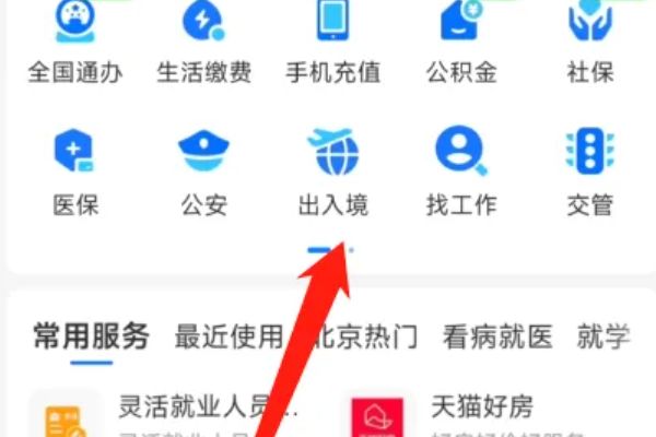 1、打开支付宝界面点击出入境。