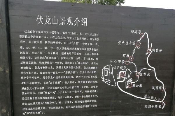 伏龙山不到300米,因为在海边的低洼地带,反而给人鹤立鸡群的感觉,是观赏怒海远涛的最佳点。山上林木茂盛,环境幽静,山巅有建于唐代的伏龙寺。这里自古就以“竹、坞、烟、云、管、江、潮、汐”等八景著称,有莲花池、仙人桥、千丈岩、蛇打滚、摩崖石刻等景观。