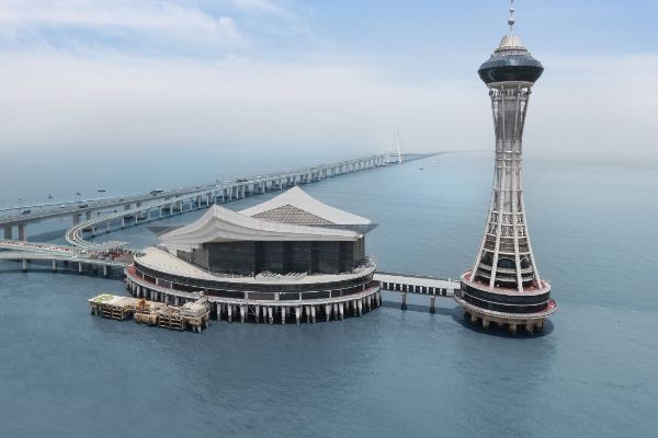 海天一洲位于杭州湾跨海大桥中间位置,由观光平台和观光塔组成,是以赏桥景、海景为主的旅游观光场所。夜幕降临之后,绚丽的灯光在广袤无垠的大海中,营造出美不胜收的人间仙境。跨海大桥如巨龙盘卧大海,让人惊叹人类使“天堑变通途”的能力。