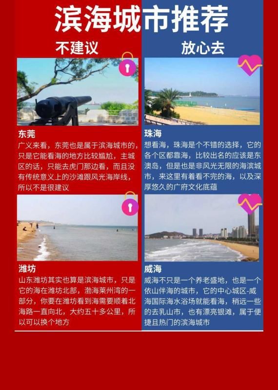 威海不只是一个养老盛地,也是一个依山伴海的城市,它的中心城区-威海国际海水浴场就能看海,稍远一些的去乳山市,也有漂亮银滩,属于便捷且热门的滨海城市