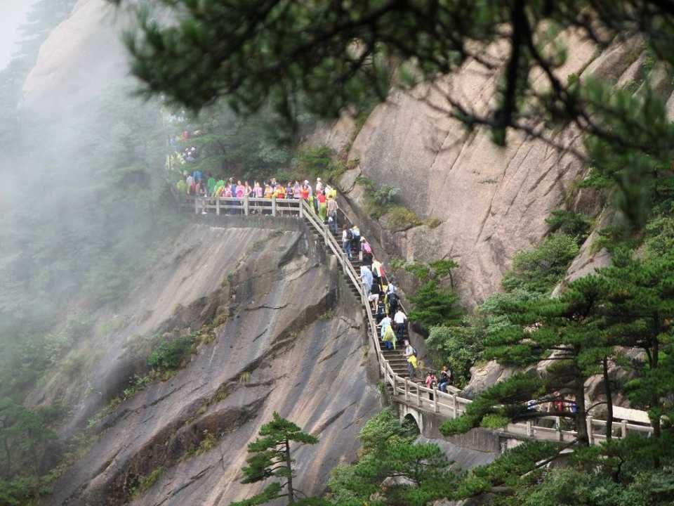 黄山自古以来在就在人们心目中有着非常高的地方,黄山山体蜿蜒叠嶂云雾缭绕,它以奇松、怪石、云海、温泉四大特别吸引着四面八方的游客。当登上黄山山顶时就如同坠入梦境般,微风轻轻吹过,将雾气挑拨的一颤一颤,时而清晰时而模糊地看到周边的人群,就如同在童话故事中一般,让人产生无限遐想。