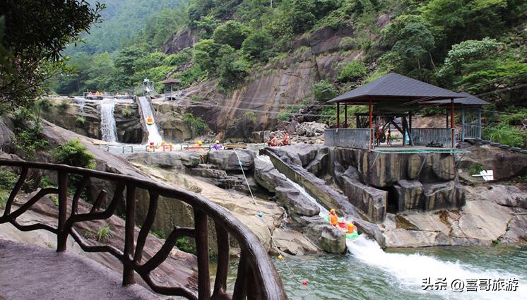【九溪欢乐谷】位于浙江省温州市文成县峃口镇九山村九溪底。九溪欢乐谷(原九溪漂流景区),全程总落差为85米,大落差高度为11多米,全程落差多达12多处,是省内刺激的漂流之一。九溪欢乐谷除漂流项目外,还新增设了峡谷大穿越项目,包含了拓展和许多亲子项目。新增设的高空滑索穿越长度达480米,高度落差高达300多米。是利用山势与溪流的走向与峡谷山势高度的落差,再借由架起的滑索在空中滑行的一种极限挑战。此外,九溪欢乐谷还有闯关漂流、亲子户外拓展、露天影院等项目。