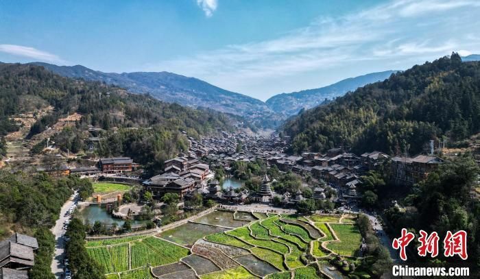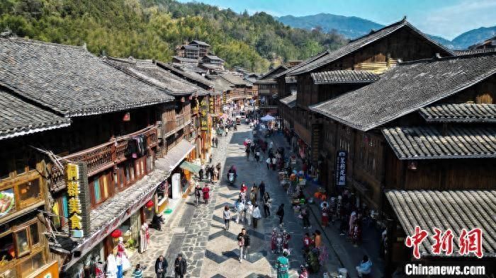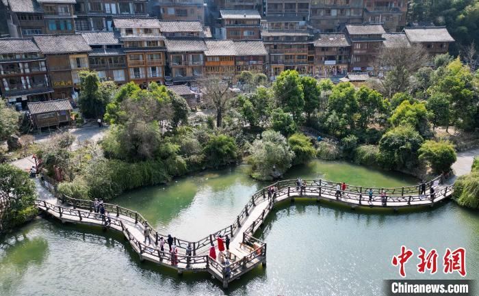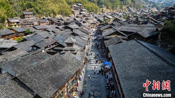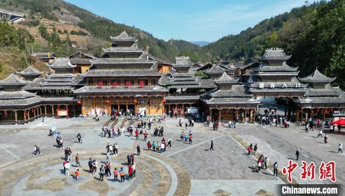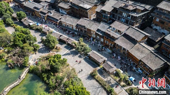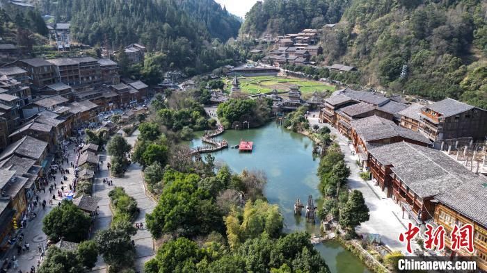春节期间,贵州省黔东南苗族侗族自治州黎平县肇兴侗寨景区举办丰富多彩的民俗表演,吸引众多游客前来观光游玩,旅游消费持续火爆。