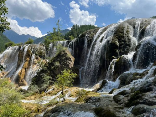 九寨沟海拔1900~3100米,属高原湿润气候,夏季平均气温19~22℃。九寨沟以绝天下的原始、神秘而闻名,自然景色兼有湖泊、瀑布、雪山、森林之美,有“童话世界”的美誉。夏季的瀑布、溪流更是迷人,如飞珠撒玉,异常雄伟秀丽。其中有千年古木,奇花异草,四时变化,色彩纷呈,倒影斑斓,欢快的流水梳理着树枝与水草,是暑期避暑的理想之地。