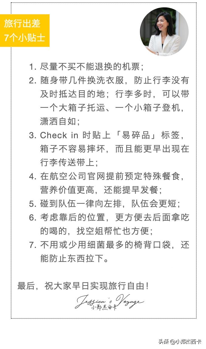 再附送一个小贴士:如果国际出差行李多、且需要转机的同学,不妨带两个箱子:一个大箱子托运;一个登机箱随身带,里面可以放几件衣服、运动服装、基本的化妆品等。