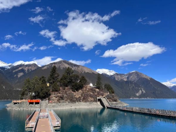 巴松措景区集雪山、湖泊、森林、瀑布牧场、文物古迹、名胜古刹为一体。巴松措湖的形状如镶嵌在高峡深谷中的一轮新月,湖面海拔3700多米,是藏东南区域最大的自然湖泊。巴松措一年四季皆景,夏季的巴松措最是美丽,晶莹剔透的湖水,倒映着湛蓝的蓝天白云,四周原始森林密布,青山如黛,顶峰是终年不化的积雪,好一场视觉的盛宴。