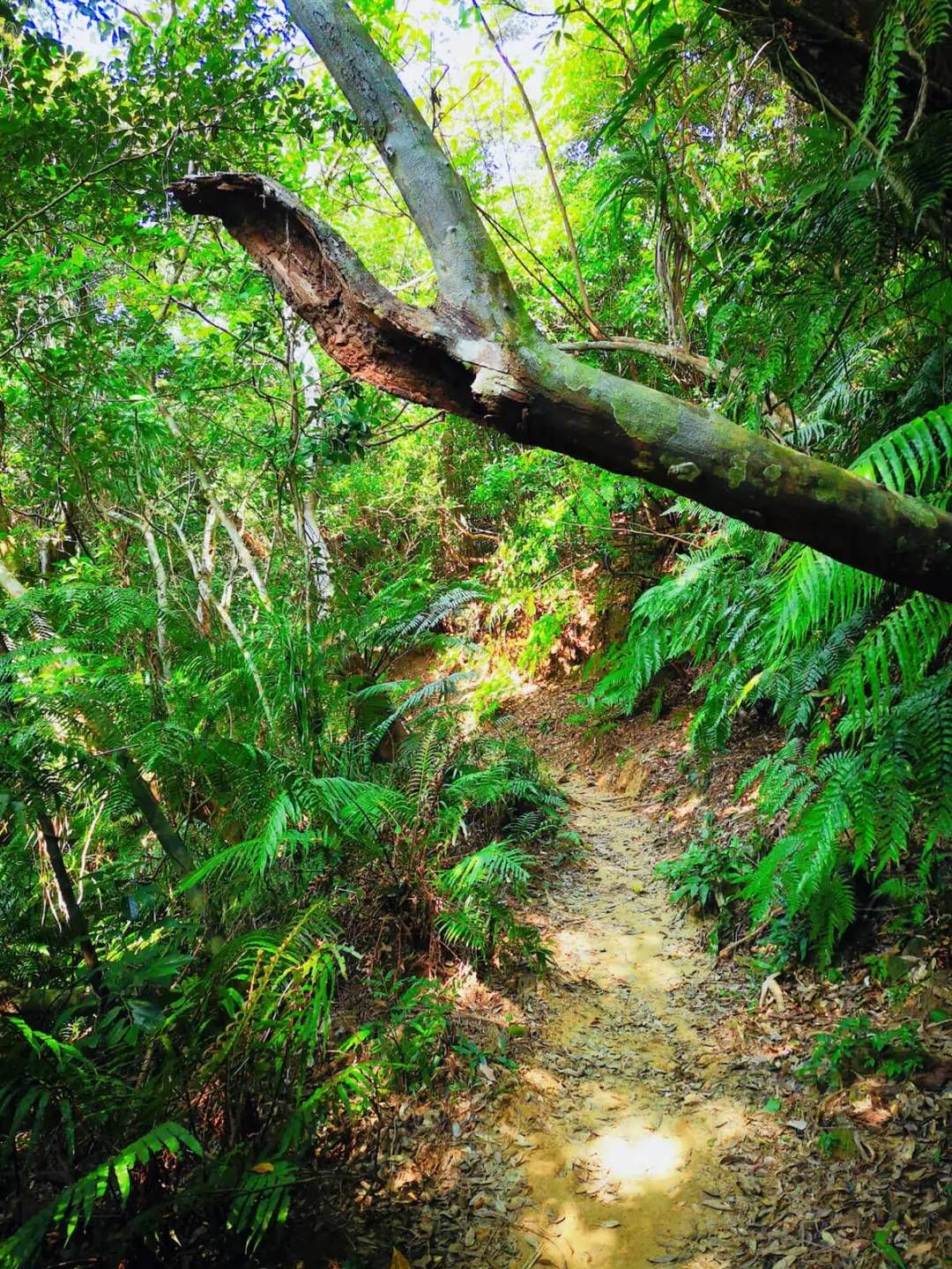 这是一条充满野趣的徒步小路,参天大树织就浓密的林荫,积存的落叶在脚下碾转。