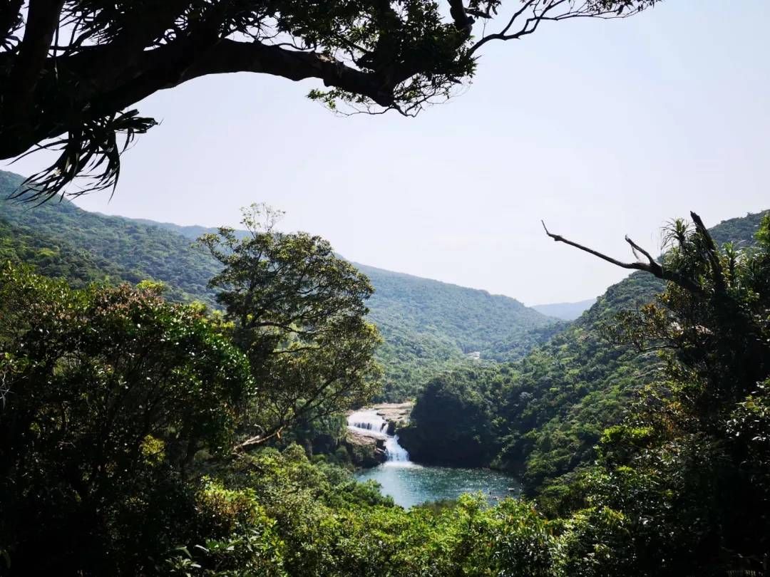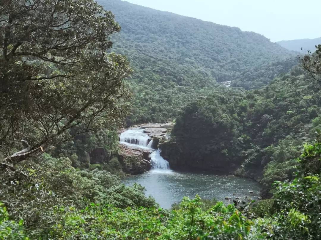 到达观景台,遥望对面的瀑布,欣赏这一瀑水在绿色开阔的山林间恣意喧哗,奔腾而去。