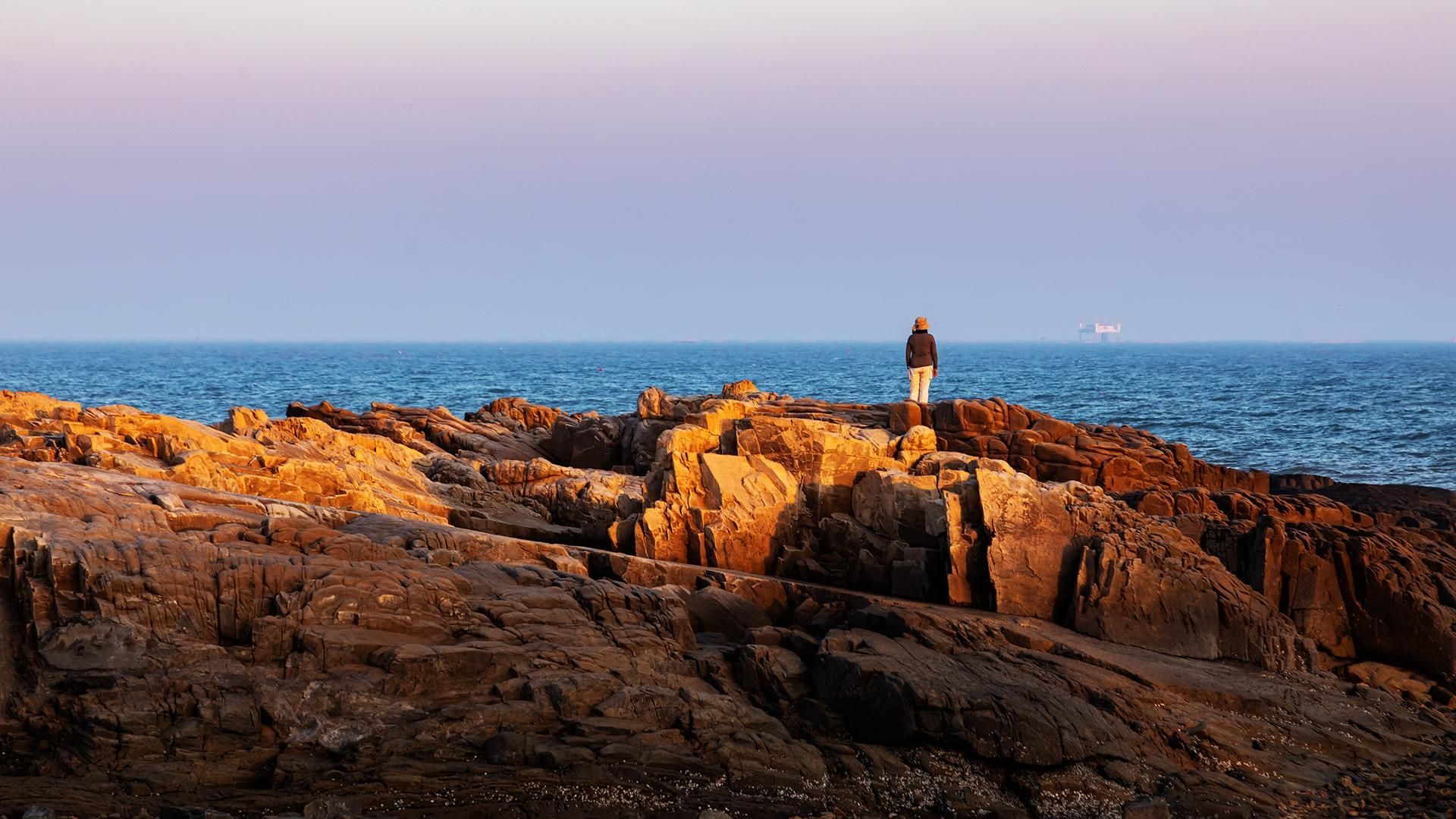 这块礁石叫“雄狮听海”,日落时分十分惟妙惟肖。