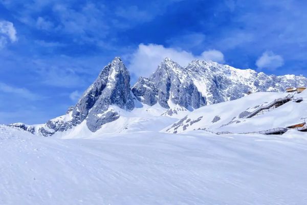 玉龙雪山,为云南省丽江市境内雪山群,东界丽(江)鸣(音)公路,西临虎跳峡涧、南起玉湖,北至大具下虎跳峡口,在丽江北面约15千米处,全长75千米,是北半球最近赤道终年积雪的山脉,隔江西与中甸雪山、东与绵绵山相并列,北自三江口,向南延伸到北纬27°,如扇面向古城展开。