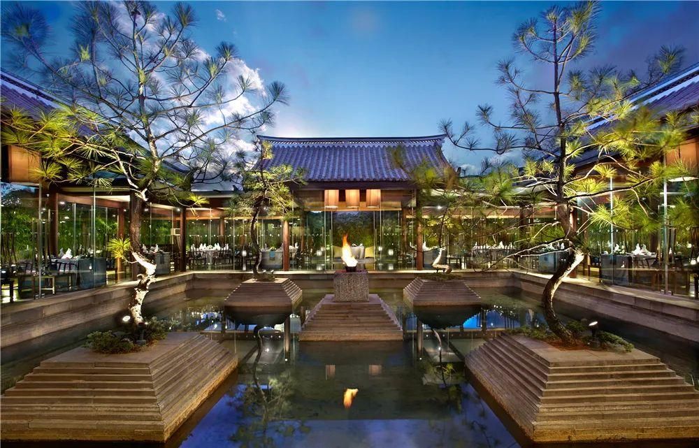 这儿的餐厅与景致完美融合,锦鲤池畔的白云餐厅,传统的中式回廊,确保每张台都能欣赏水景。明月餐厅则将落地镂空窗则将人与风景完美融合。文海酒吧则是赏雪山的最佳地。