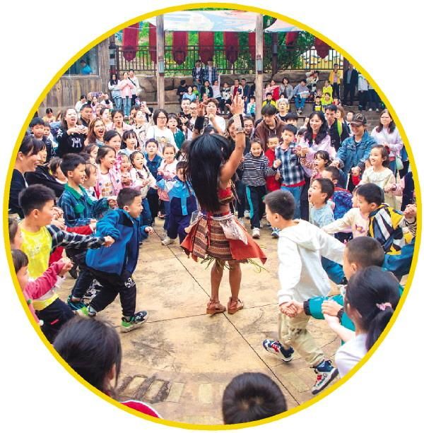 假期里的桂林融创国际旅游度假区人头攒动,5天时间共接待游客15万多人次。每天早上和中午,不少父母带上孩子来到海世界,观看《动物精灵泡泡舞会》儿童剧,沉浸在绚丽的舞台、生动的故事里。全天多个时段,在海世界、欢乐部落、中心广场等,春日精灵仙子与萌趣的动物人偶热情互动,热闹的舞蹈派对直接将节日气氛拉满。入夜后,在欢乐部落水舞台的火精灵狂欢夜,神秘的喷火特技如流星划破夜空,现场气氛十分热烈。